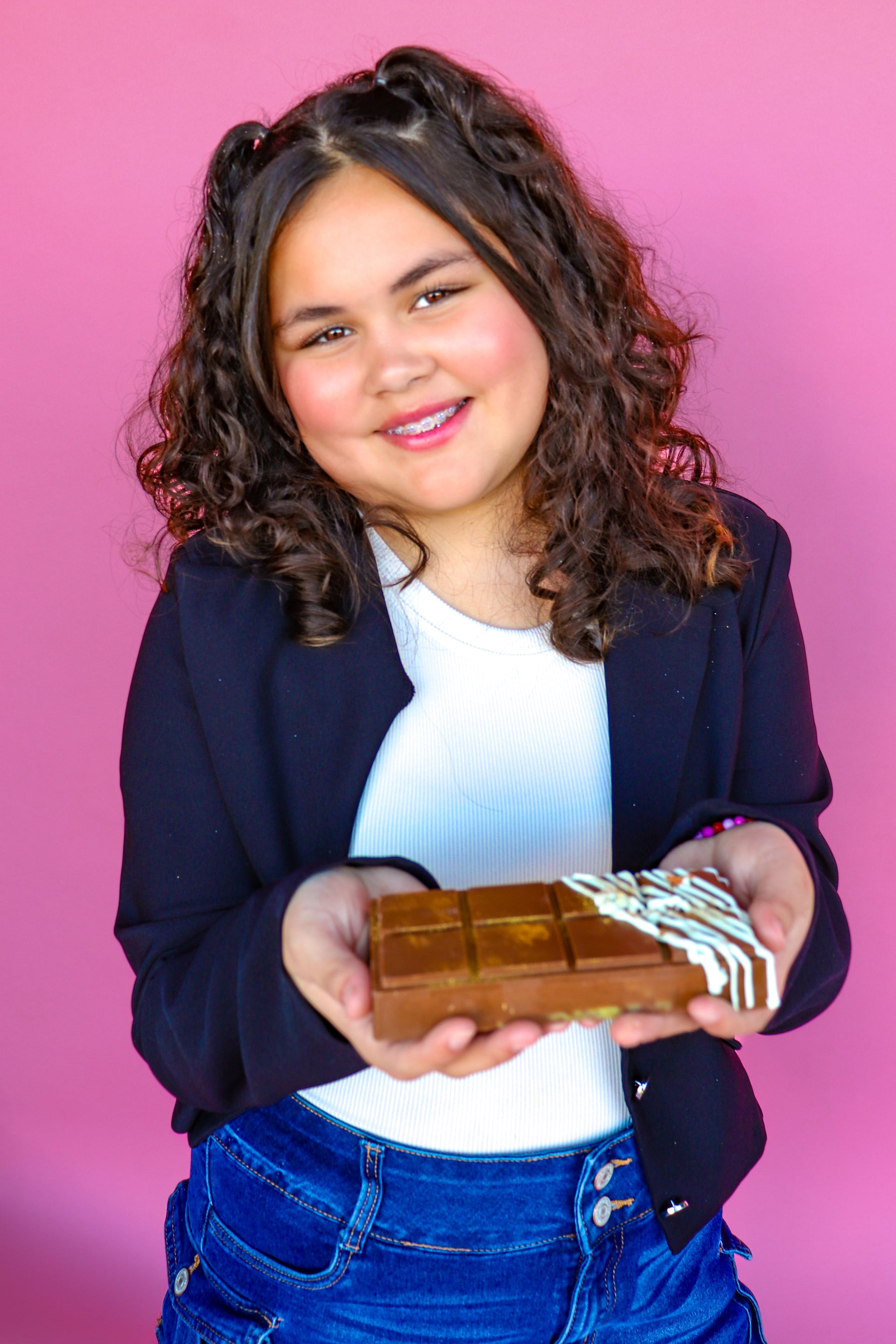 This is the regular size bar.  Approximate size is 6.2 x 3.0 x 0.85 inch Filled with a delicious pistachio cream mixed with crunchy katiafi.  View more
